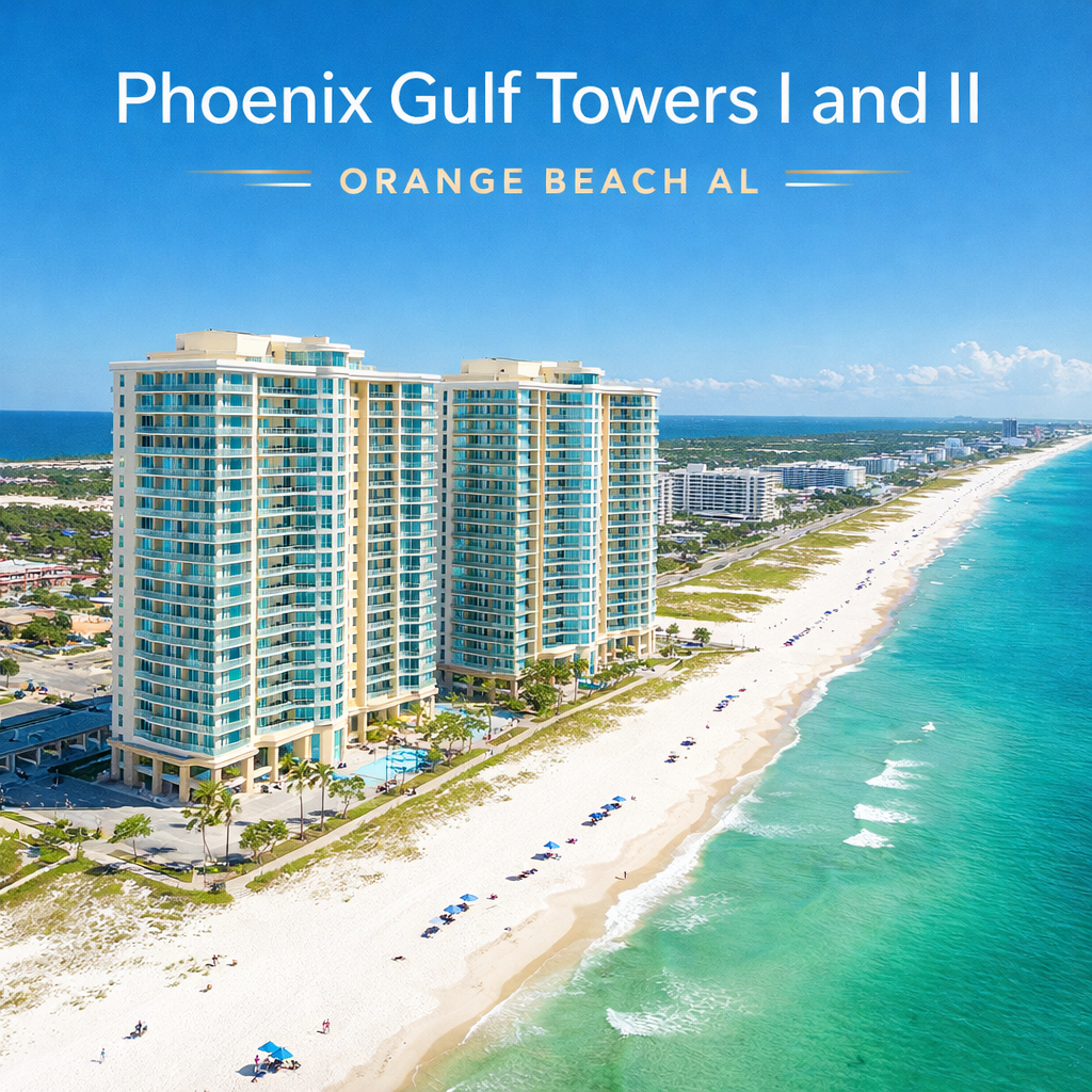 Phoenix Gulf Towers I and II are well-known beachfront condo properties in Orange Beach, offering direct Gulf access, spacious accommodations, and the convenience of staying near many of the area’s restaurants, attractions, and beach activities.